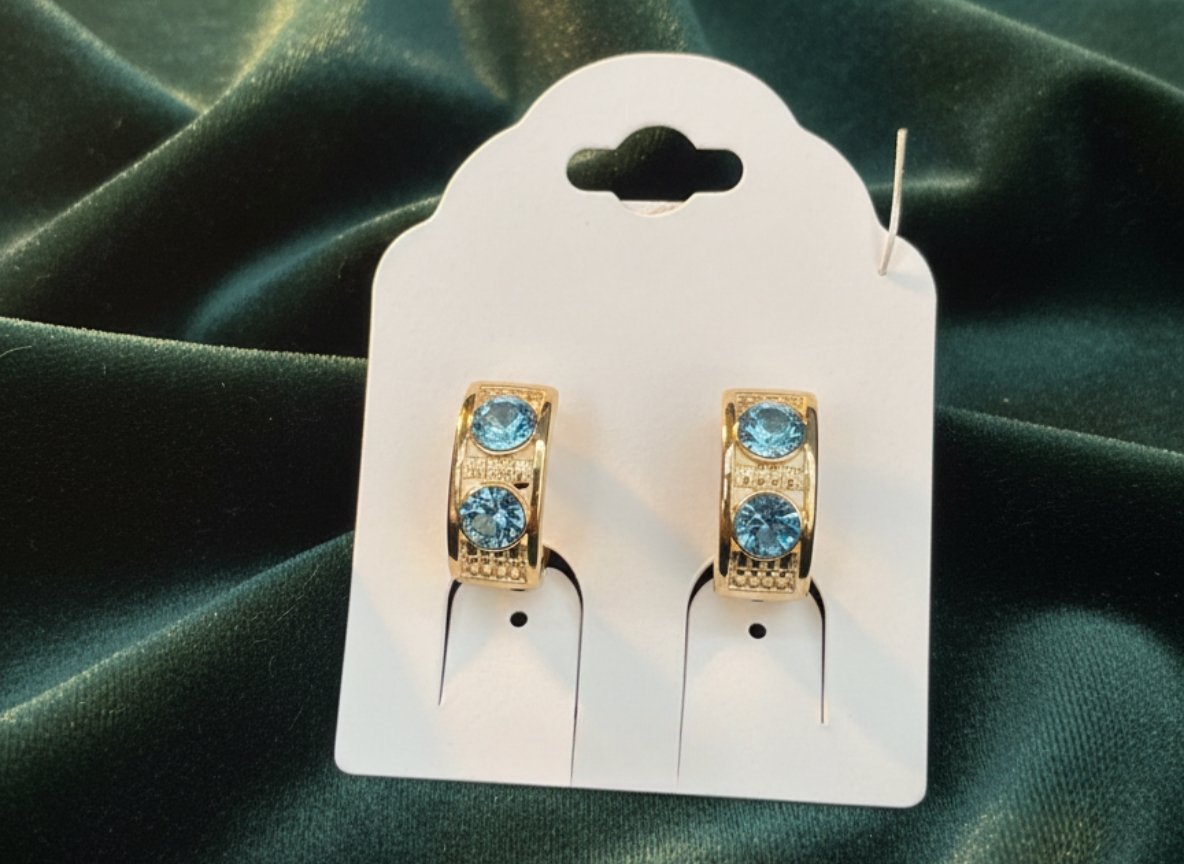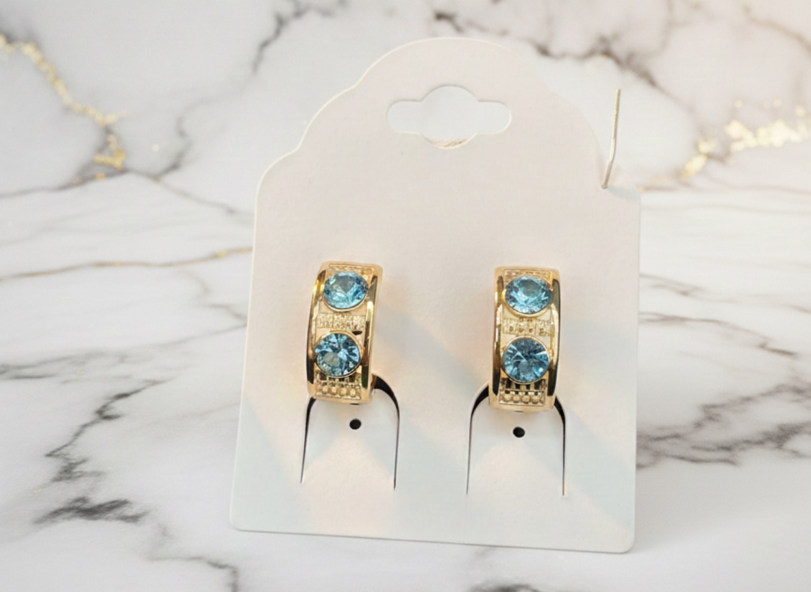Radiate sophistication with the Azure Luxe Crystal Hoop Earrings — a stunning blend of bold color and refined shine. Crafted in a polished gold-tone finish, each hoop features two brilliant round-cut blue crystals that catch the light beautifully from every angle.