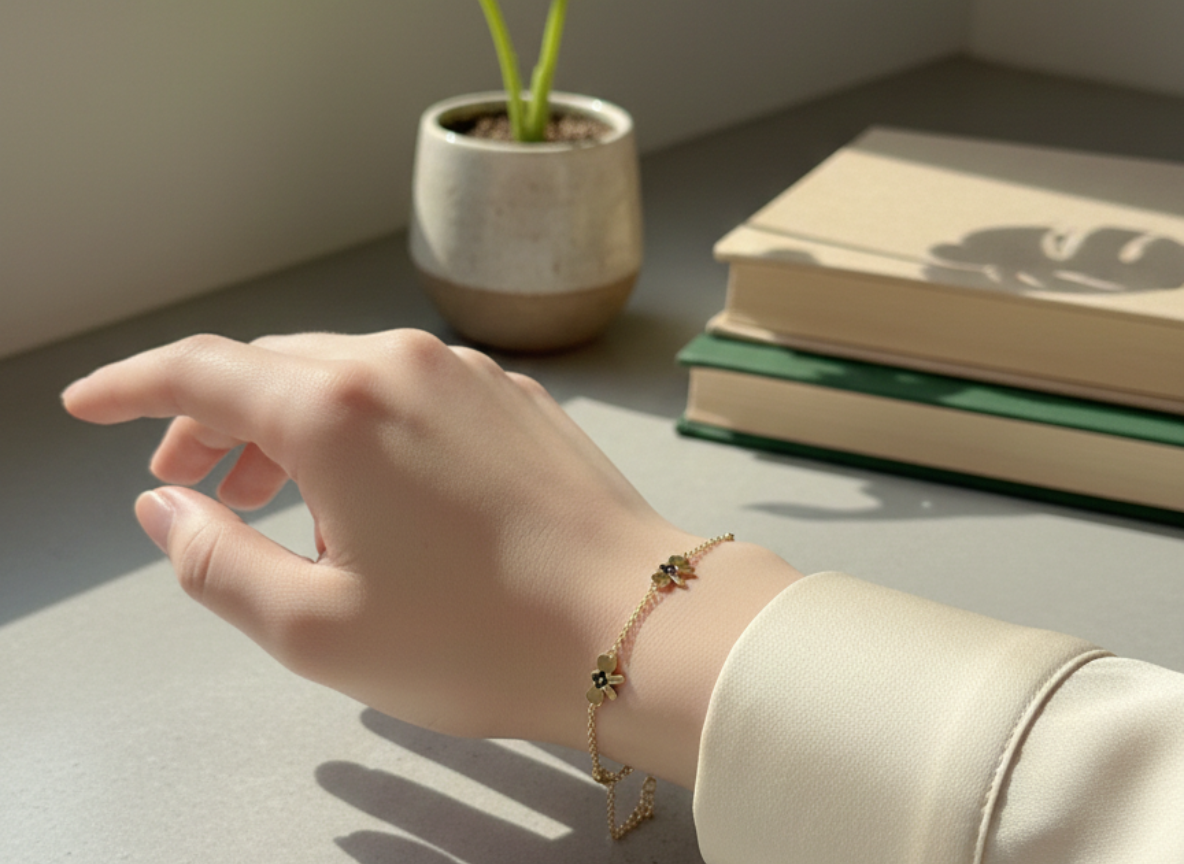 Whether worn alone for a refined touch or layered with other dainty bracelets, this floral-inspired piece brings timeless beauty to any look.