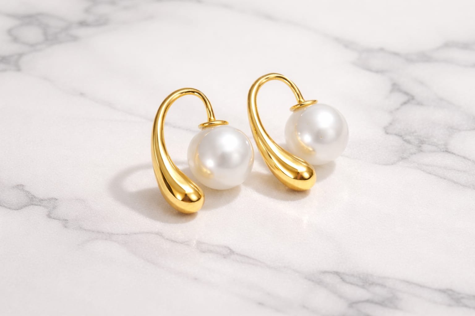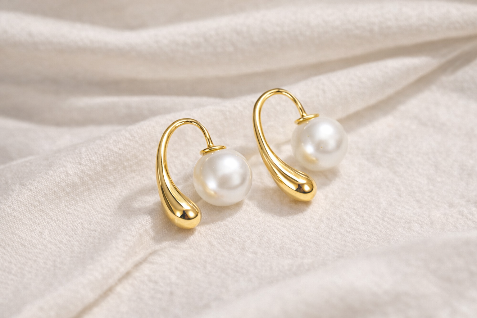Elevate your look with these Pearl Glow Drop Earrings, designed for timeless elegance. Featuring a smooth gold-tone curved design paired with a luminous pearl, this piece adds a refined and graceful touch to any outfit. Minimal yet luxurious, perfect for both day and evening wear.